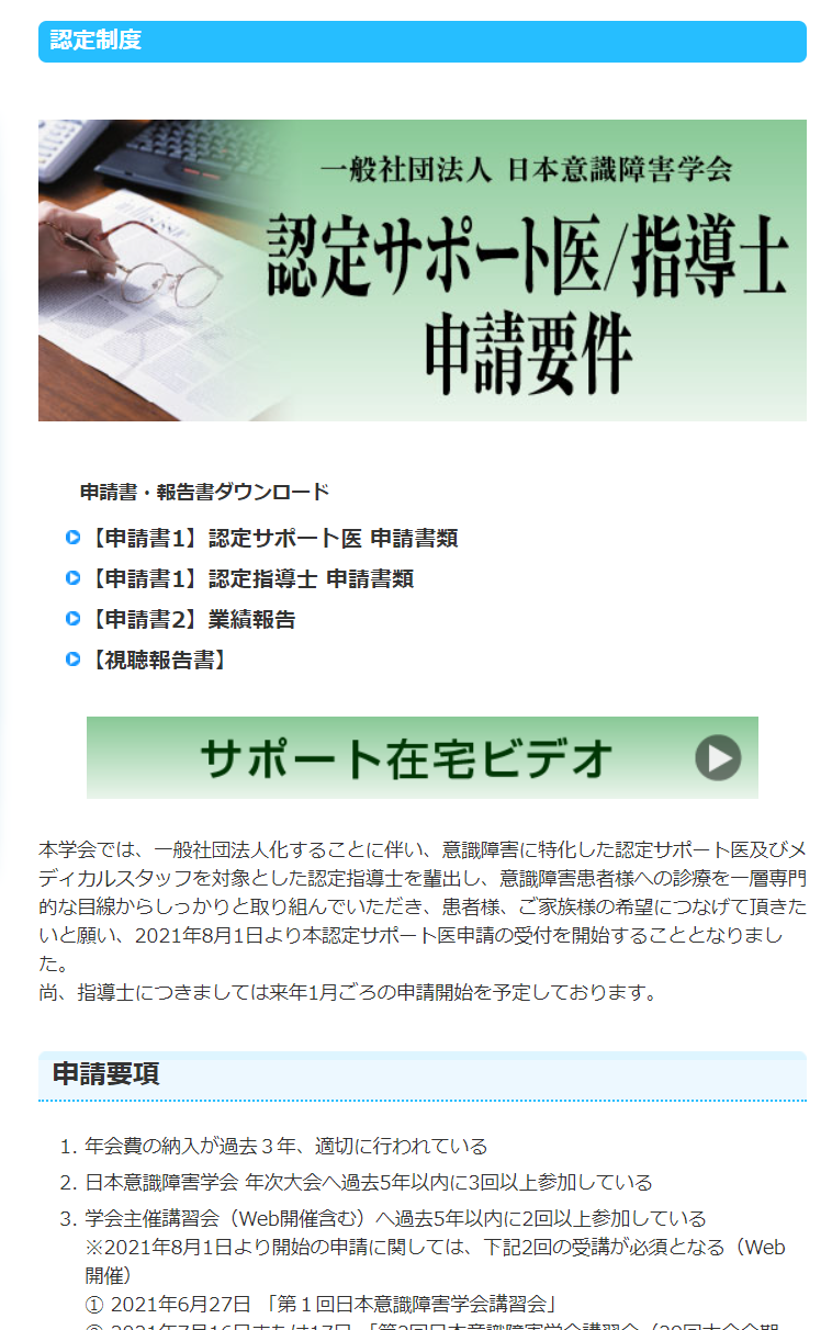 日本意識障害学会は、学会認定の「サポート医、指導士」の制度を作って下さいました。詳細は下記のサイトをご覧ください。